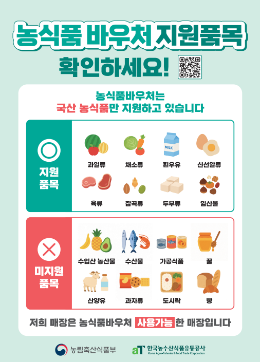 지원품목은 국산 농식품 중심으로 제한됩니다.